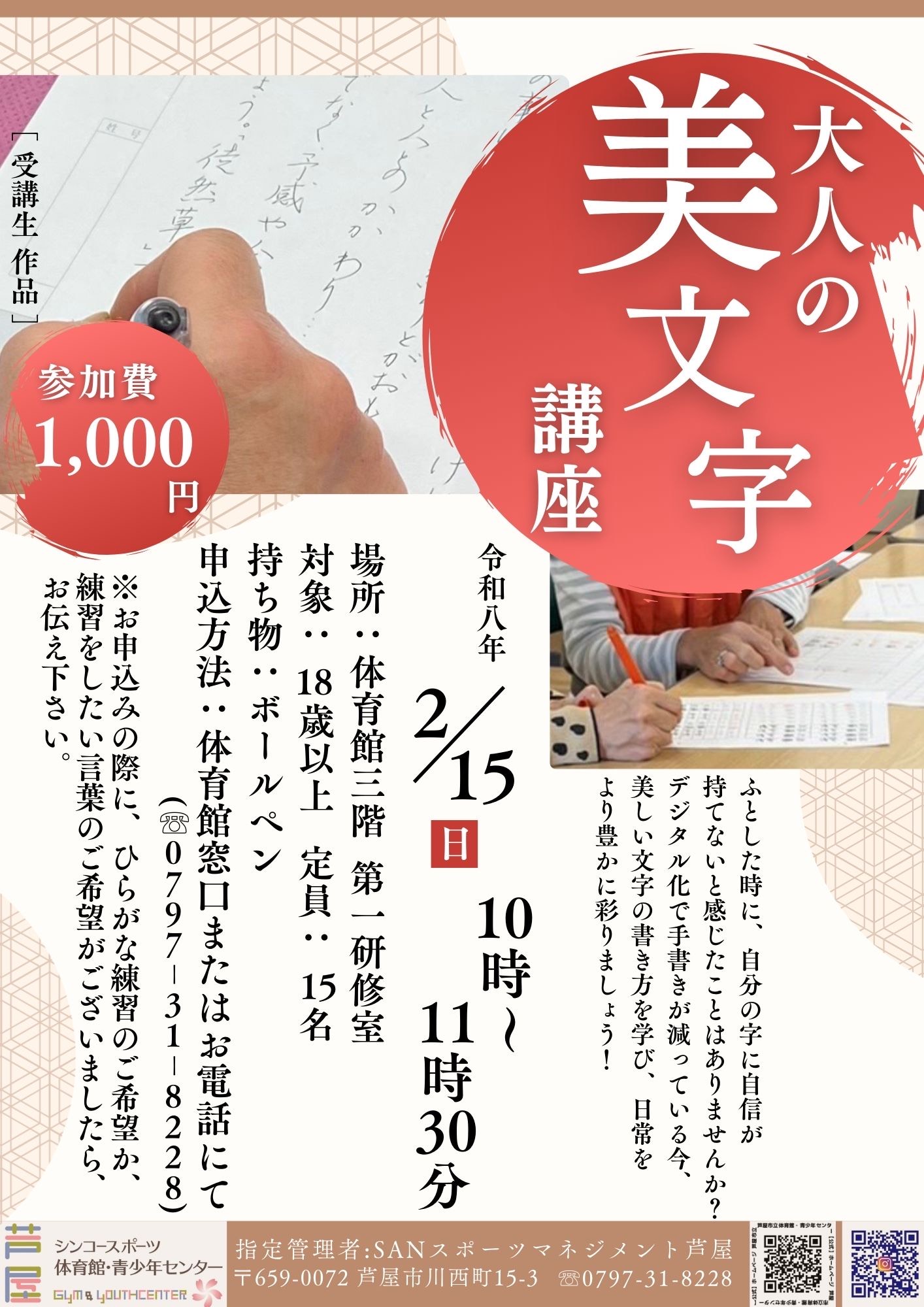 2月に「大人の美文字講座」のイベントを開催いたします。