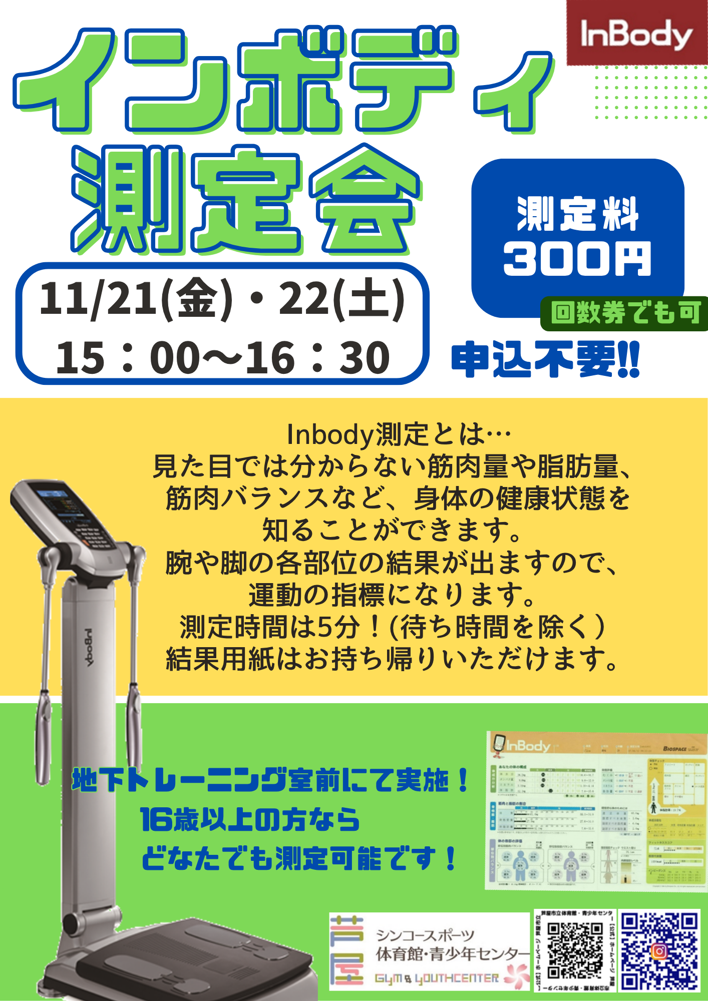 測定料300円!インボディ測定会のご案内