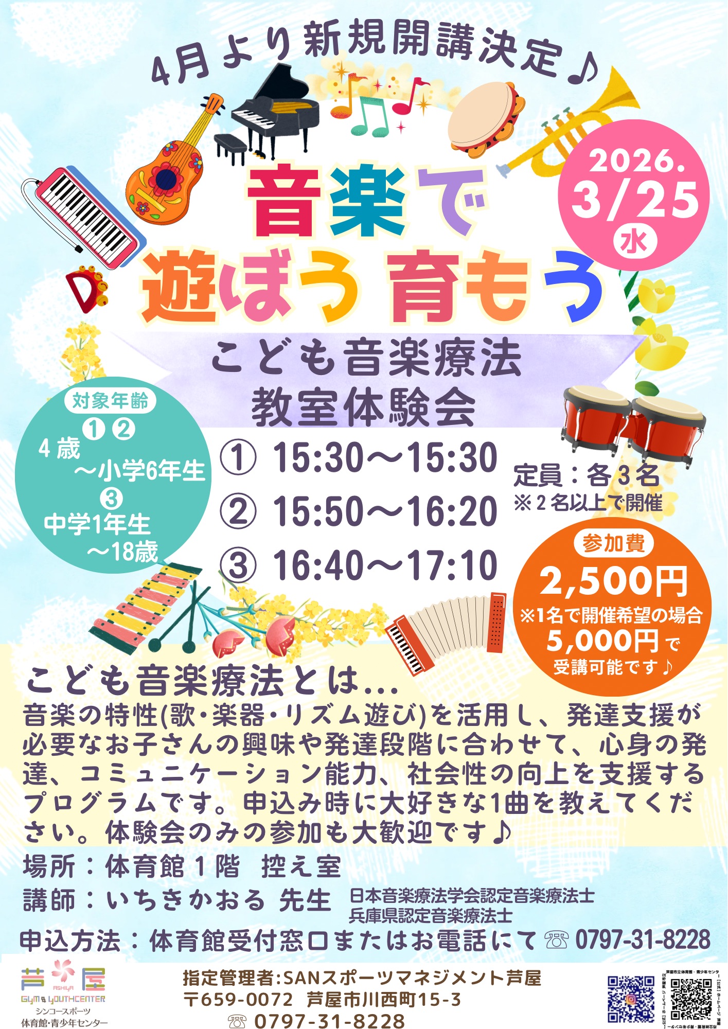 4月開講決定♪音楽で遊ぼう 育もう こども音楽療法 教室体験会のご案内