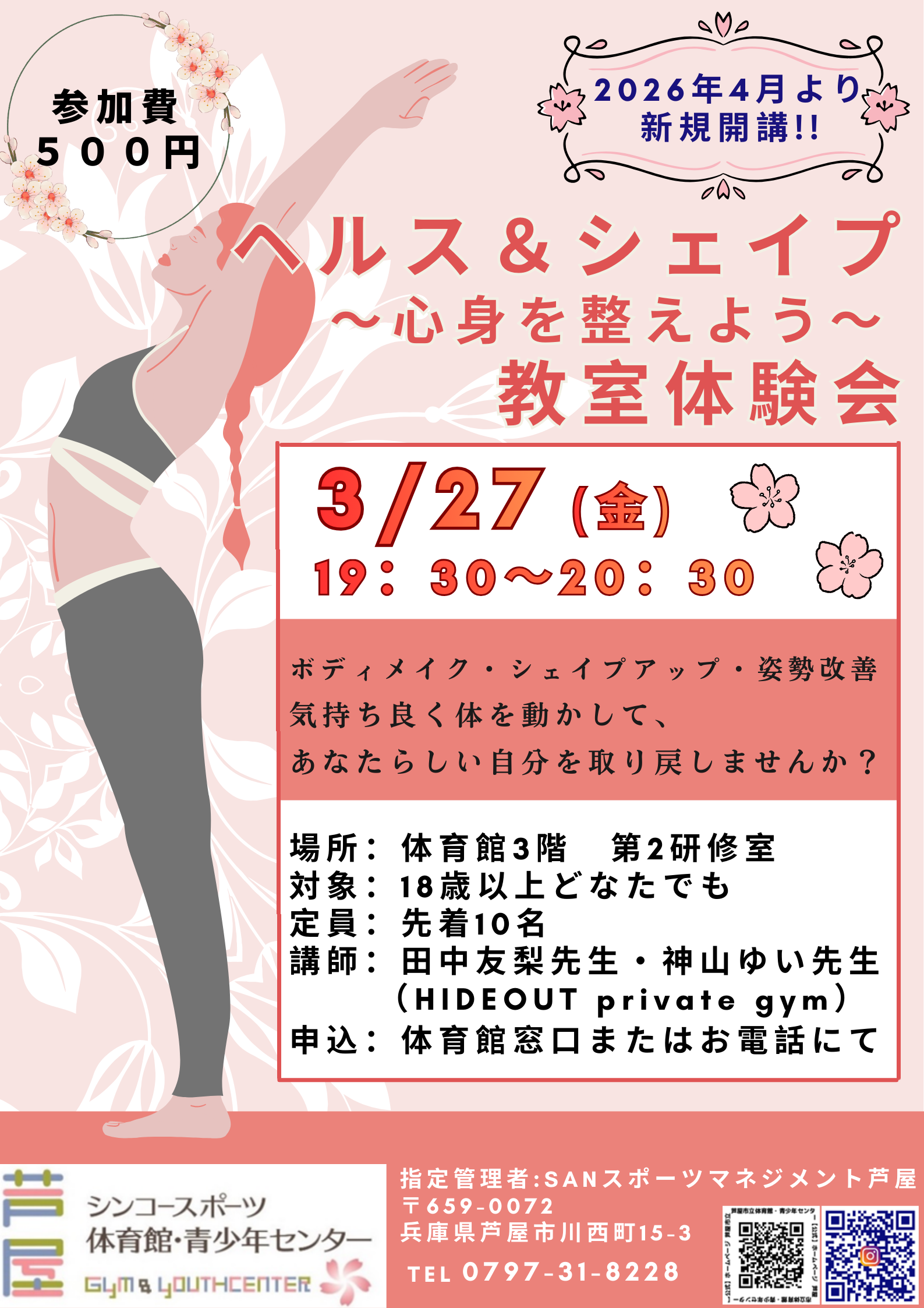 4月新規開講🌸ヘルス&シェイプ教室体験会